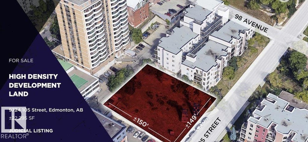 Visit the Listing Brokerage (and/or listing REALTOR®) website to obtain additional information. The ±22,295 SF site is zoned High Density Residential (HDR) under the Capital City Downtown Plan. Strategically located along 105 Street with direct access to downtown and the River Valley, offering strong long-term redevelopment potential.